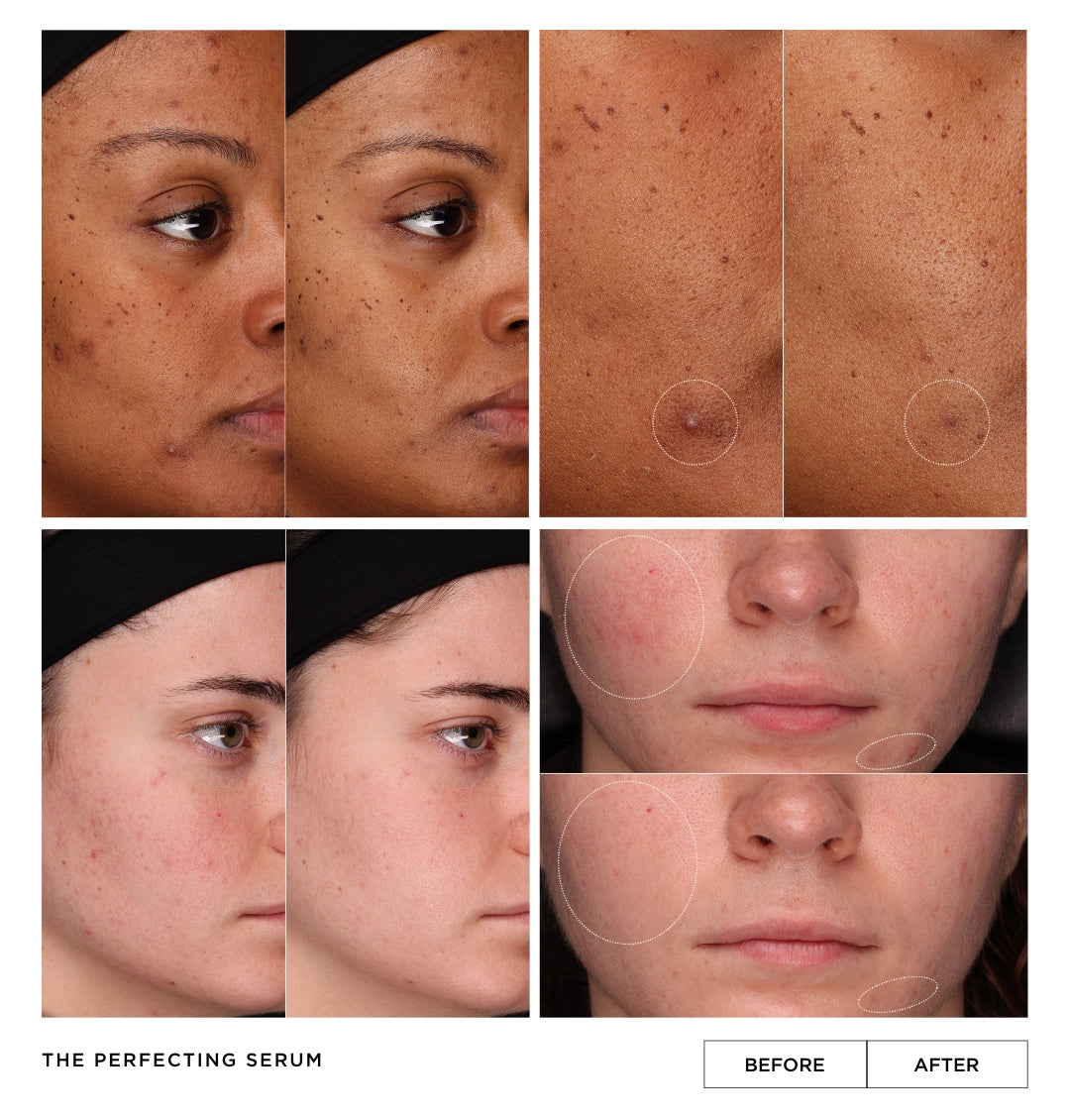We know you'll love the transformative power of THE PERFECTING SERUM. For a limited time, we're offering a 30 day, money-back guarantee. Over 4 weeks, experience the magic of the serum for yourself...fewer breakouts, a smoother texture, and a brighter glow while your dark spots begin to fade!
