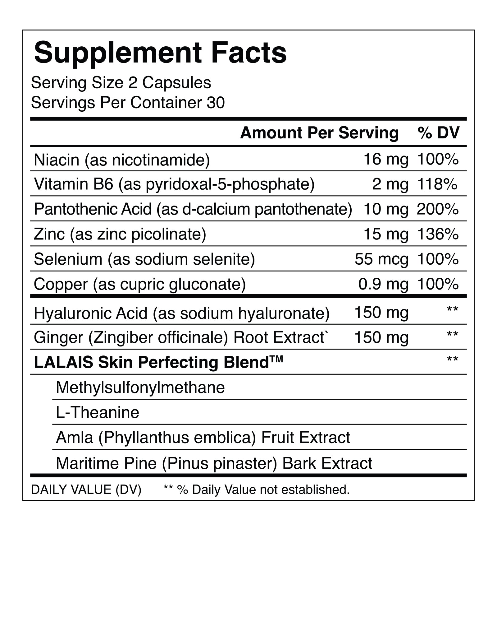 - LALAIS Skin Perfecting Blend™ Methylsulfonylmethane (MSM), L-Theanine, Amla Extract (Phyllanthus Emblica), Maritime Pine Bark Extract (Pinus Pinaster)